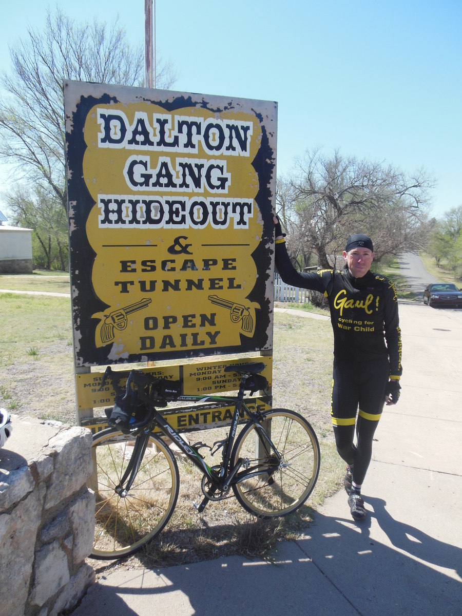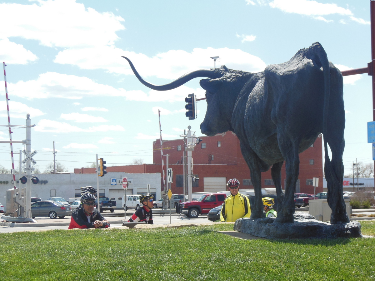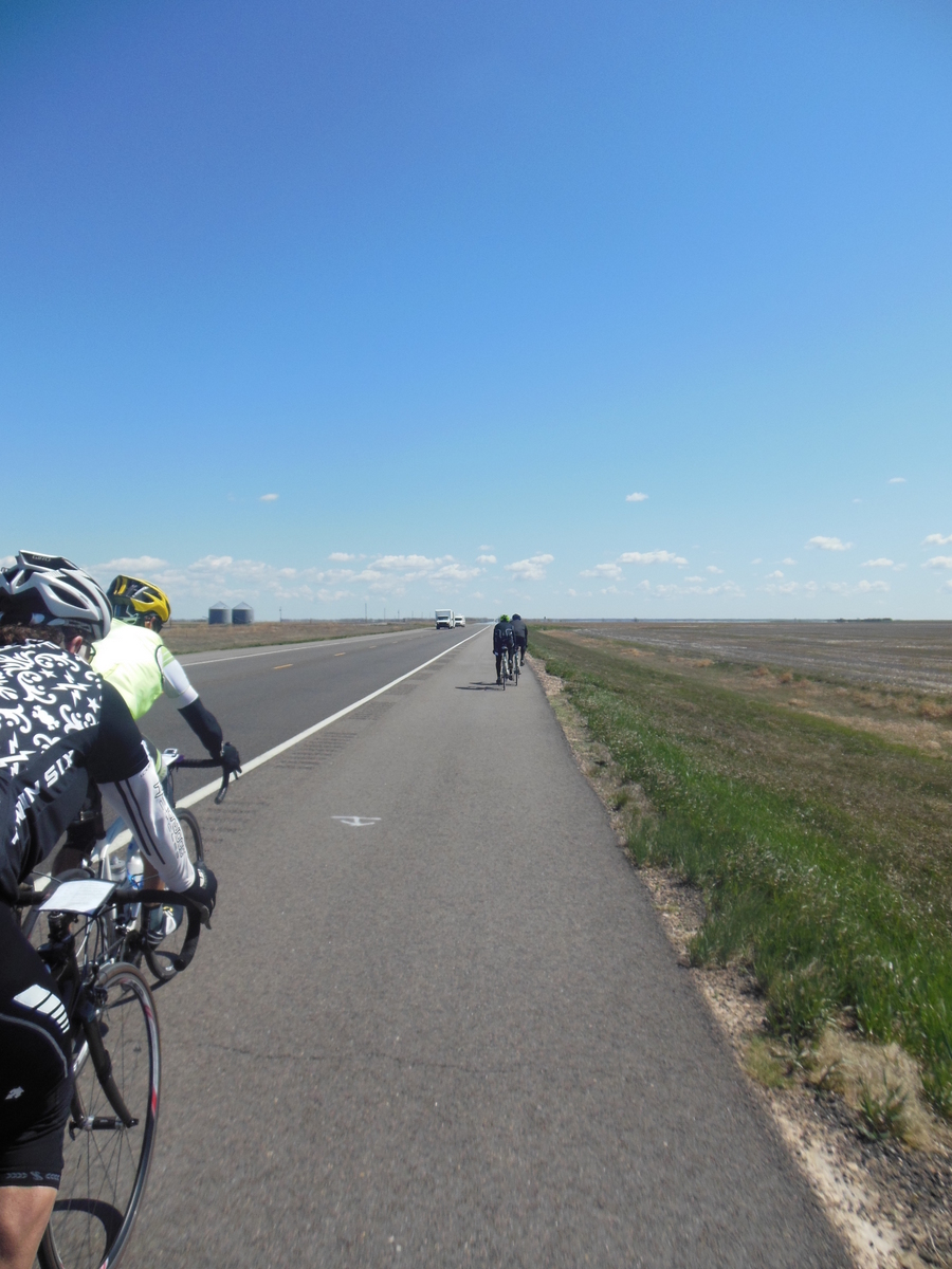 Na een lunch weer op weg naar de eindbestemming. Dodge City. We draaiden naar het noorden en kwamen daarmee meer in de wind. Maar ons hechte groepje van vier werkte goed samen. En eerlijk is eerlijk, als je een dag lang windkracht 7 tegen hebt overleefd, is windkracht 3-4 tegen prima te doen. We raapten gevoegelijk iedereen die voor ons gestart was, weer op.