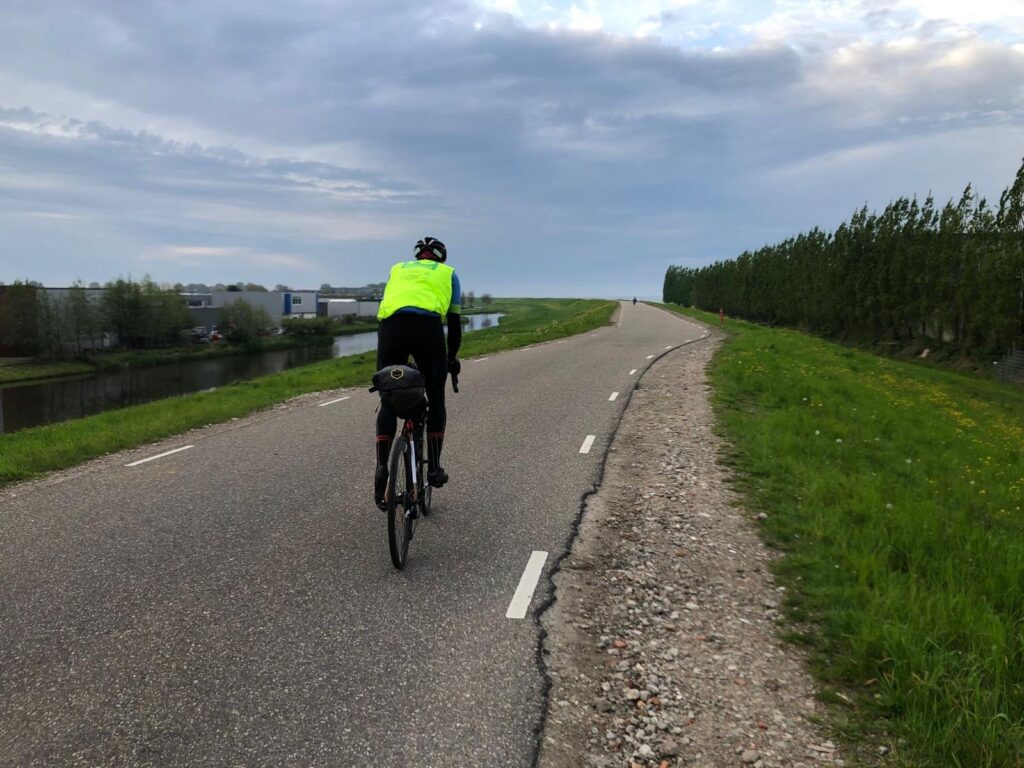 Bij Hoorn zie ik bij het opdraaien van de Schellinkhouterdijk een bekende gestalte. Studiegenoot en fietsfanaat Norbert! Speciaal vroeg opgestaan om mij en andere RATN deelnemers voor het werk nog even aan te moedigen. Wat intens mooi. Op de Zuiderdijk richting Enkhuizen valt de wind me mee. We draaien oostwaarts en de wind staat zuidoost, dus behoorlijk tegen. Maar er is goed doorheen te zoeven.