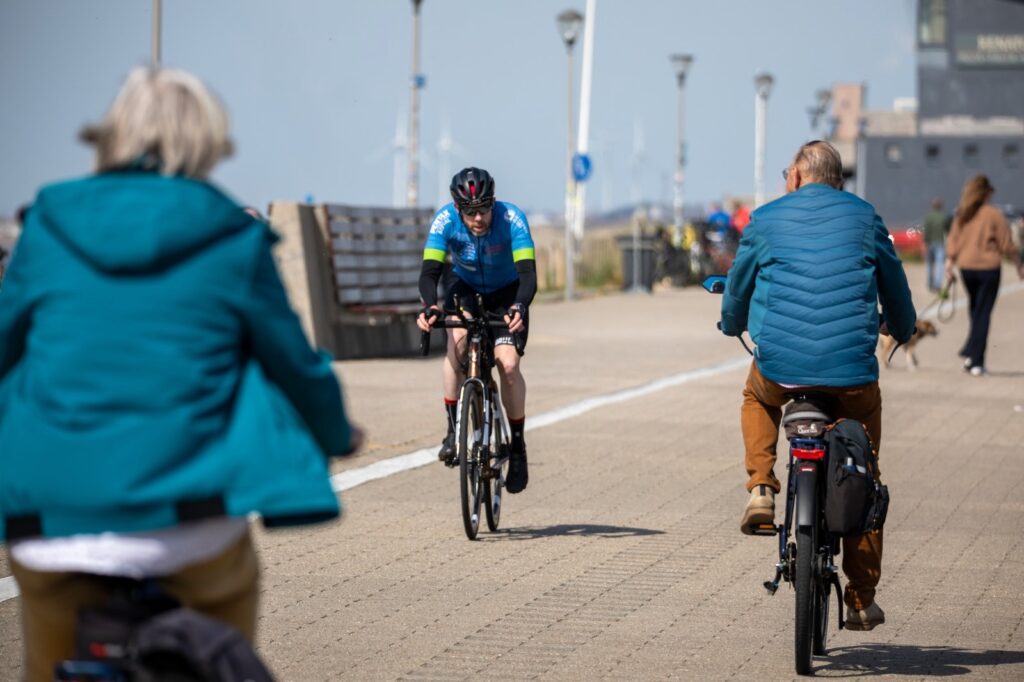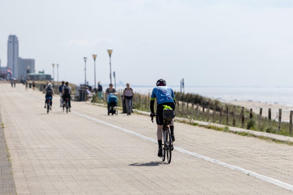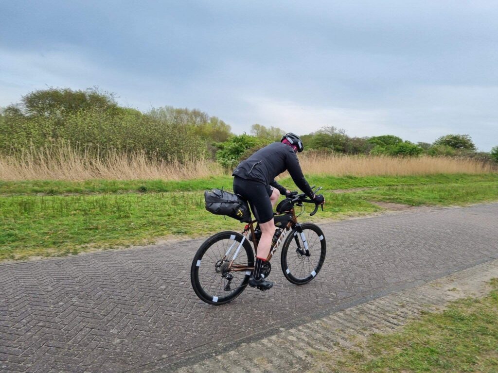 Ik geniet van de duinen, het klimmen en dalen. Dan over een grindpad richting Noordwijk. Ik begin last te krijgen van mijn rechtervoet. Sowieso doen alle contactpunten met de fiets: handen, achterste en voeten min of meer een beetje pijn. Maar in m’n rechtervoet is het echt branderig. Er is daar toch geen blessure aan het ontstaan?