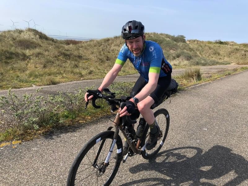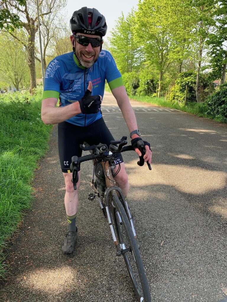 Dan de Brouwersdam. Plek van vele zoete herinneringen aan acht Marillion-weekenden in het daar gelegen vakantiepark. Over parallel universa gesproken…… Dan Zeeland binnen op Schouwen-Duiveland. In Burgh-Haamstede weet ik een supermarkt. De volgende pleisterplaats. Daar word ik aangesproken: ‘jij bent Floris he?’ Het is Sjoerd, ‘dotwatcher’. Iemand die de deelnemers volgt via de tracker die we bij ons hebben én een hart onder de riem steekt. Hij vertelt de verhalen uit de kop van de koers, waarvan de eersten al gefinished zijn in Amerongen. Sjoerd is zo aardig een stuk mee te fietsen. Super motiverend. Bij de Stormvloedkering nemen we afscheid.